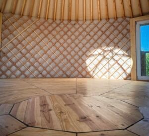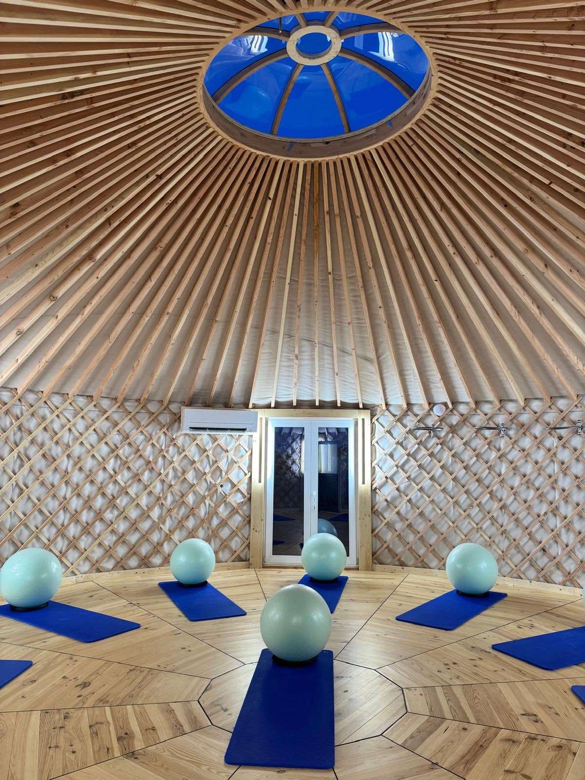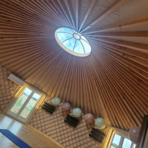 Dans ce cocon circulaire en bois et toile, baigné de lumière naturelle, vous entrez dans un espace hors du temps. Le bois, la douceur du sol, la chaleur de l’ambiance et l’ouverture vers la nature en font un lieu propice au lâcher-prise et à la méditation.